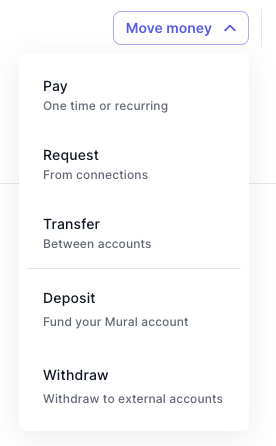 Payment requests can be Via the Move Money dropdown's Request option