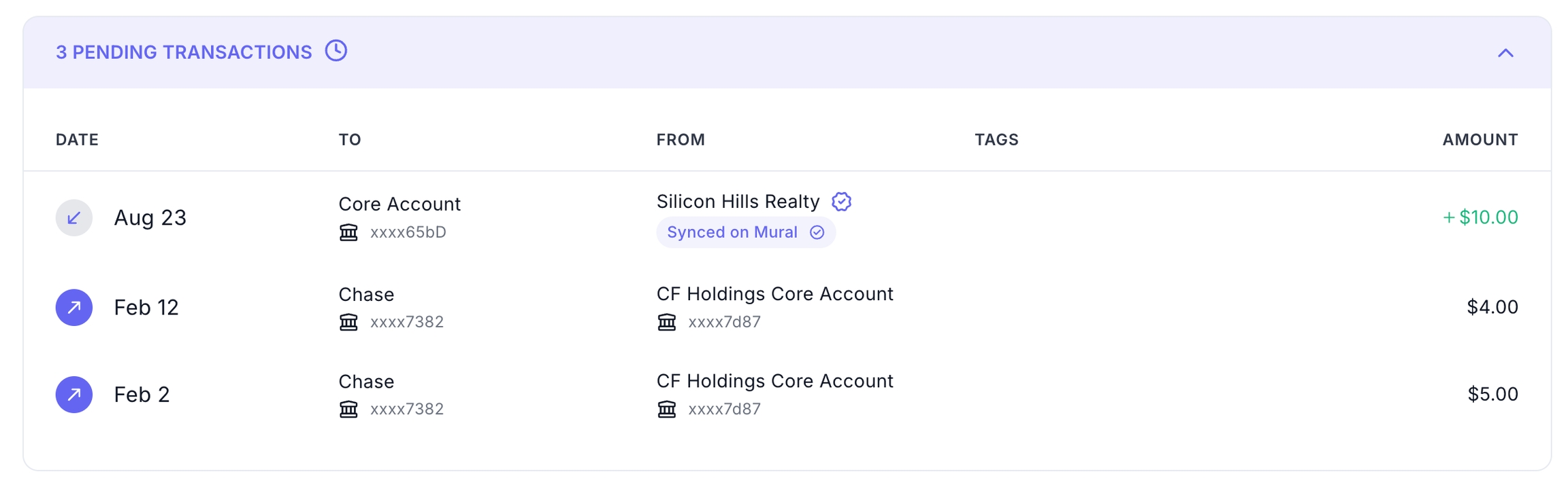 After sending a payment request, it will populate in your Transactions tab as a Pending Transaction.