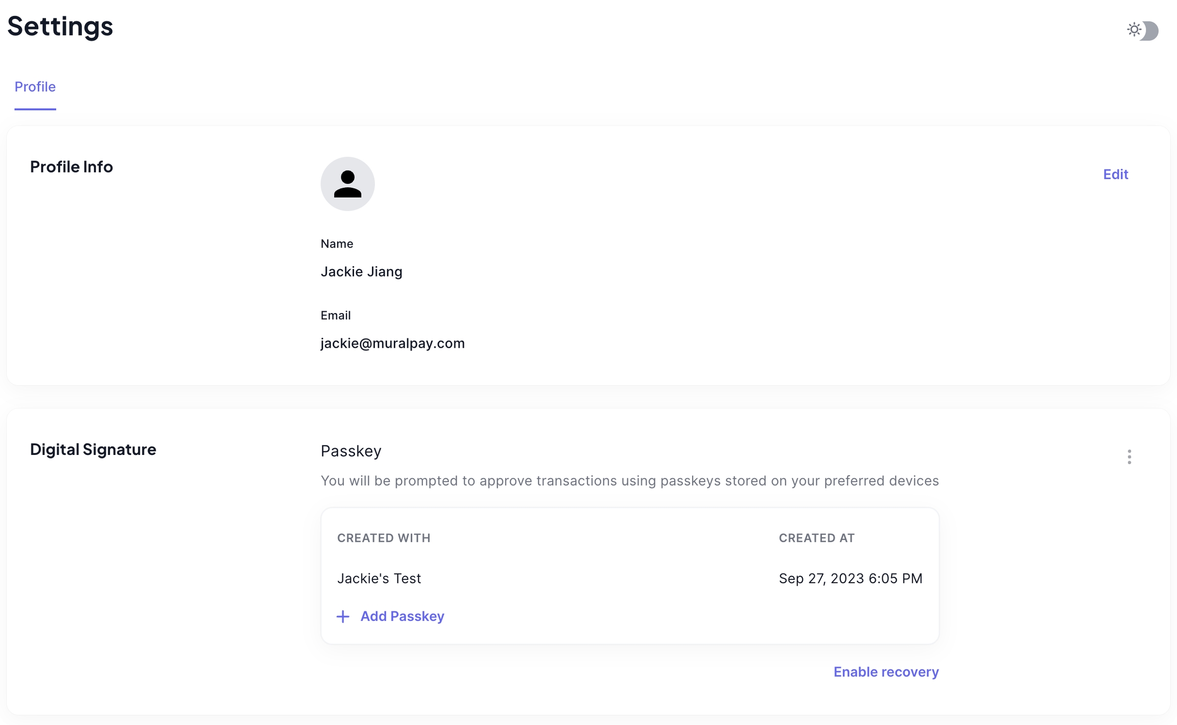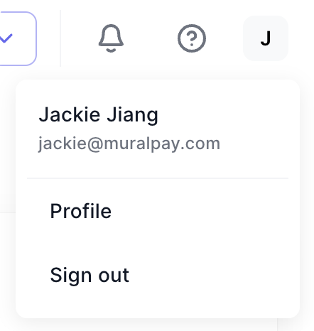 Your User on Mural is tied to the email used to login to the platform. As a User, you can manage your profile data by selecting Profile from the dropdown on the top right of the navigation bar.