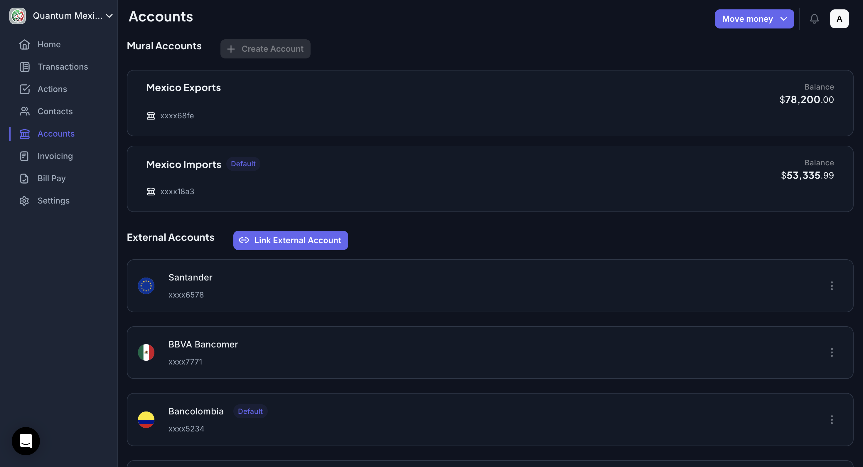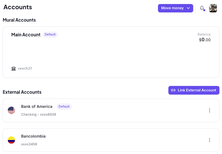 Digital Wallet - Allows you to easily move funds between your Mural accounts and off-platform digital wallets.